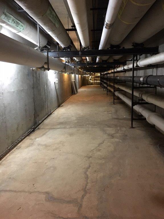 - Misc. concrete removal and replacement to install new floor trench drain system, new access ramp in to boiler room for owner access, remove and replace wall louvers to allow access in basement boiler room for boiler placement.