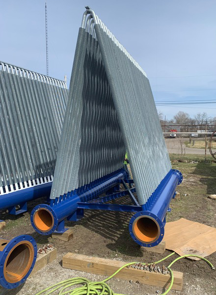Recently complete project by MCC for a private customer. Compressed air aftercoolers for a temporary air compressor installation. Total project consisted of 8 units. Completed by MCC’s certified pipe welders who are members of Plumbers and Pipefitters Local 577, Portsmouth, OH.